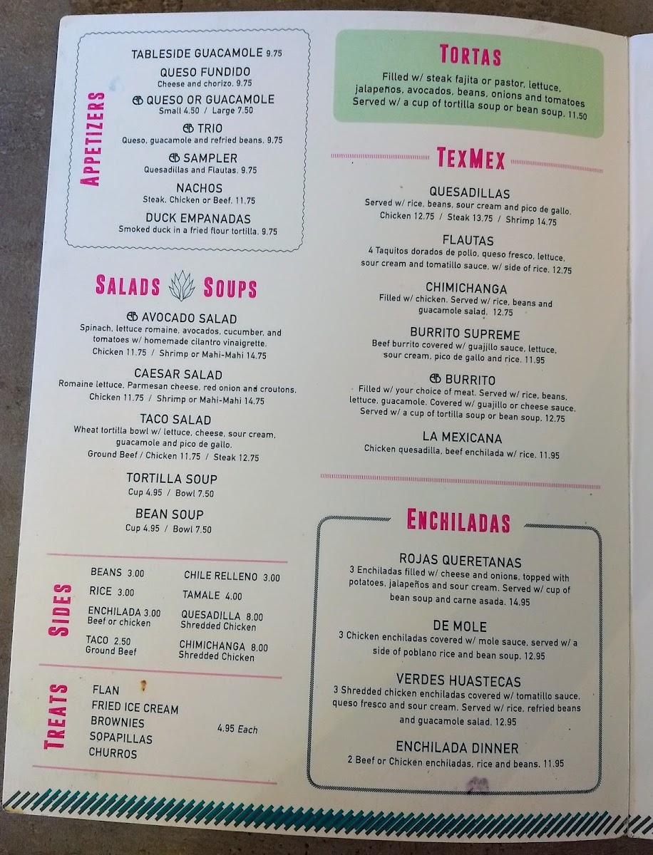 Filled with steak fajita or pastor, lettuce, jalapeños, avocados. Beans, onions and tomatoes. Served with a cup of tortilla soup or bean soup.
